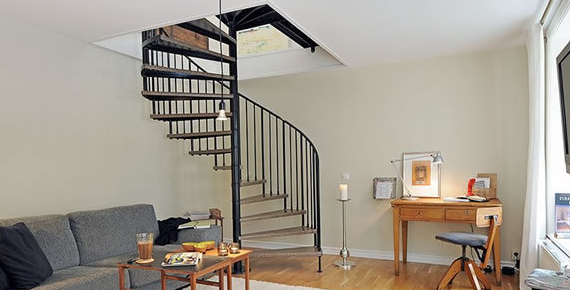 三、旋梯:對于設(shè)計師要求更高,對于空間的利用更為嚴(yán)格,在視覺效果上更具美感也對空間的利用更為大條,因此在小戶型中少見使用。盤旋而上蜿蜒的趨勢,也使更多人著迷。