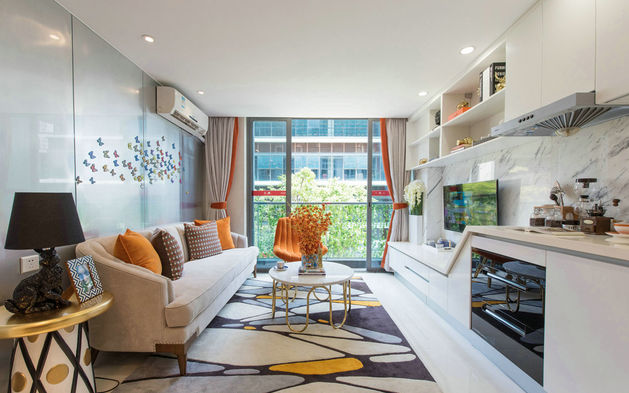 本案中結合現(xiàn)代時尚風格融入了米蘭設計周里的時尚感與設計感元素,通過現(xiàn)代極簡的造型、艷麗奪目的色彩以及新穎材料的運用,力求打造出一個當下最為時尚的國際化宜居空間,同時給客戶留下一種尊貴,玩味,而又富有張力的樣板房體驗感受。